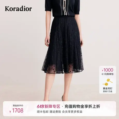 珂莱蒂尔波点网纱半身裙女收腰半裙显瘦通勤百搭a字裙中长款裙子